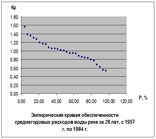 Для каждого модульного коэффициента вычисляем соответствующую ему эмпирическую обеспеченность Р по формуле: