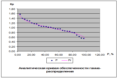 Кр - ранжированный в порядке убывания модульный коэффициент. Р - эмпирическая обеспеченность. РГ - значения обеспеченности при гамма-распределении, которое определяется формулой: