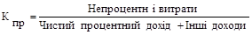 Оптимальне значення цього коефіцієнта дорівнює 1%. Він показує залежність банку від непроцентних доходів (збільшення коефіцієнта свідчить про рівень диверсифікації).