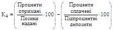 | 4 | Коефіцієнт активності використання залучених коштів у дохідні активи | Співвідношення дохідних активів (Да ) і залучених коштів (Зк ) | |