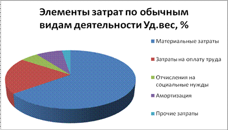 Представленные в таблице 7 показатели характеризуют рост затрат в отчетном году по сравнению с прошлым годом на +822 463 тыс.руб., что с одной стороны является следствием увеличения выручки, а с другой вызвало сокращением прибыли предприятия. Затраты увеличились за счет роста материальных затрат на +544 631 тыс.руб., затрат на оплату труда – на +237 863 тыс.руб., отчисления на оплату труда – на +61 844 тыс.руб. Это связано с ростом цен на сырье, увеличением продаж, повышением заработной платы, увеличением количества персонала. Структура затрат в отчетном году характеризует большой удельный вес материальных расходов – 64,8 %, значит производство материалоемкое. Дальнейшее плановое увеличение продаж может привести к росту материальных затрат и затрат на оплату труда.