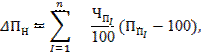 Метод прямого счета по всем изделиям позволяет определить влияние изменения удельного веса каждого изделия на объем выпуска товаров в плановом и текущем периодах. Влияние структурных сдвигов на объем выпуска товаров определяется как разность между условным объемом производства товаров при фактическом выпуске, фактической структуре и плановой цене ( V 2 ) и условным объемом производства товаров при фактическом выпуске, плановой структуре и плановой цене ( V 1 ) :