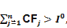 где PVj - чистый доход от производственной деятельности в период j или чистая прибыль плюс амортизационные отчисления; CF j - денежный поток (Cash Flow) за период j; N 2 - продолжительность периода отдачи от инвестиций, j = 1, 2, ..., n2 ; 1/(1+ E ) j = (1+ E )- j - дисконтный множитель по ставке за j лет. Текущая стоимость инвестиционных затрат (Io ) определяется как сумма выходных денежных потоков: