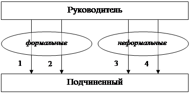 Рис. 1.2. Управленческие отношения «Руководитель – подчиненный»Из этого следует, что для выполнения процесса управления руководитель может иметь либо только 2, либо до 4-х каналов воздействия на подчиненного, выбор которых будет зависеть от конкретной ситуации. Для уверенного решения управленческих задач руководителю необходимо иметь максимальное количество возможностей воздействия на подчиненного. А для этого он должен решить следующие задачи:1. Сформировать хороший психологический климат в подчиненном ему коллективе. 2. Иметь авторитет среди своих подчиненных. Решение этих 2-х задач создает предпосылку для эффективного достижения целей, стоящих перед руководителем и его коллективом. Характеризуя сущность процесса управления, следует сказать, что природа этого процесса – информационная. Руководитель, согласуя и координируя деятельность подчиненных, воздействует на них информационно – прямо или косвенно. Прямо – административным актом (приказом, распоряжением), психологически; косвенно – экономической и социально-психологической средой [6;54]. Содержание и набор действий и функций, осуществляемых в процессе управления, зависят от типа организации (деловая, административная, общественная, армейская и т.д.), от размеров организации, от сферы ее деятельности, от уровня в управленческой иерархии (например, начальник коммерческого отдела – первый функциональный уровень), от функции внутри организации (в нашем случае это маркетинговые функции) и еще от многих факторов. Однако, несмотря на все разнообразие, как на это обратил внимание еще в 1916 г. А. Файоль, для всех процессов управления в организации характерно наличие однородных видов деятельности. Можно сгруппировать все виды управленческой деятельности в четыре основных функции управления: 1) планирование, заключающееся в выборе целей и плана действий по их достижению; 2) организация, посредством которой происходит распределение задач между отдельными подразделениями или работниками и установление взаимодействия между ними; 3) руководство, состоящее в мотивировании исполнителей к осуществлению запланированных действий и достижению поставленных целей; 4) контроль, заключающийся в соотнесении реально достигнутых результатов с теми, которые были запланированы[2,38]. Хотя существуют различные подходы к выделению управленческих функций, мы остановимся на четырех выше перечисленных, т.к. их использование в рамках нашего исследования наиболее целесообразно. 1.2 Механизм построения системы управления на предприятииПостроение системы управления на предприятии – это одна из важнейших задач высшего руководства. Именно первый руководитель должен принимать решение по поводу изменений в существующей системы управления. При этом обязательно участие функциональных руководителей, которые в рамках своей компетенции вносят предложения по совершенствованию структуры всей организации, а так же непосредственно занимаются организацией работы своего функционального подразделения (организацией управления) [15;27]. Под организацией управления понимается деятельность руководителя, направленная на построение аппарата управления, способного во главе с ним решить стоящие перед коллективом задачи в условиях динамично меняющейся среды. На построение аппарата управления оказыва