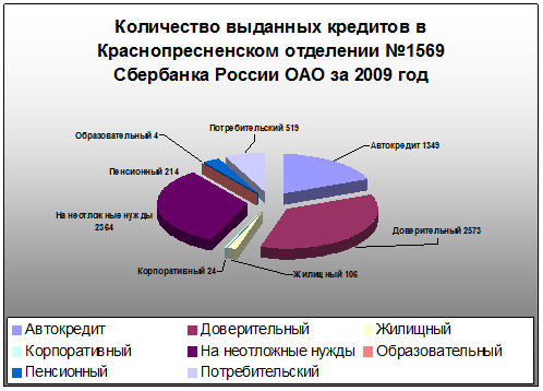 Рисунок 1. Сумма выданных кредитов за последние 4 года.По состоянию на 01 января 2010 объем кредитного портфеля частных клиентов Московского банка Сбербанка России составил 2,1 млрд. руб. Количество заемщиков физических лиц увеличился за 2010 почти на 25 тысяч человек. Следует также отметить почти двукратный рост в 2010 г. объемов выдачи жилищных кредитов (2008г.- 8,8 млрд. руб., 2009г.- 15,1 млрд. руб., 2010 г. – 30,3 млрд. руб.). Удельный вес просроченной задолженности составляет 7,12% (369 604 тыс. руб.). В октябре 2009 г. был произведен перевод большинства кредитных продуктов физическим лицам на систему «кредитной фабрики», которая позволяет клиентам в течение двух-трех дней, при предоставлении необходимого пакета документов, получить решение Сбербанка России по кредиту [6, c.31]. Количество подданных заявок по состоянию на 01 января 2010 года – 325, их которых отказано в предоставлении кредита – 155. В 2010 году продолжена работа с субъектами Российской Федерации в рамках приоритетного национального проекта «Доступное жилье - гражданам России». Сумма остатка по кредитам, выданным в рамках соглашений с администрациями, составляет более чем 2,5 млрд. руб. В условиях ускорения темпов роста кредитного портфеля, его нарастающей доли в активах и высокой чувствительности финансового результата к качеству ссудного портфеля, Банк уделяет особое внимание контролю и управлению кредитным риском. Работа в этом направлении осуществляется в соответствии с «Политикой Сбербанка России по управлению кредитными рисками». Указанный документ определяет порядок идентификации, анализа и оценки кредитных рисков, мероприятия по их ограничению, снижению и предупреждению, процесс мониторинга принятых рисков, контроль соблюдения установленных процедур и решений, составление и анализ отчетности о принятых рисках. Деятельность банков направлена на расширение круга контрагентов и предоставляемых кредитных продуктов, на повышение конкурентных преимуществ банка за счет реализации системного подхода к управлению кредитными рисками, оптимизации отраслевой, региональной и продуктовой структуры кредитных портфелей банка контрагентов и отдельные операции банка [16, c.7]. На сегодняшний день Сбербанк России является крупнейшим оператором на рынке кредитования физических лиц. Имея богатый опыт в обслуживании массового клиента и стремясь наиболее полно удовлетворить потребности заемщиков, Сбербанк предлагает физическим лицам большое количество различных кредитных программ. Кредиты предоставляются в рублях и иностранной валюте, процентные ставки варьируются в зависимости от срока кредита и предоставленного обеспечения, выдача кредита производится как наличными деньгами, так и в безналичном порядке. Сроки кредитования зависят от вида выбранной кредитной программы и формы обеспечения кредита. Заемщиками Сбербанка могут являться граждане Российской Федерации в возрасте от 21 до 75 лет. Рассмотрим подробно виды кредитов, которые предоставляет Сбербанк России физическим лицам. Самыми популярными кредитами у наших заемщиков являются кредиты, которые можно привлечь для решения любых насущных проблем. К ним относятся: - «На неотложные нужды без обеспечения» - предоставляется без залога и поручительства в сумме до 500 000 рублей. - «Доверительный» - для заемщиков, имеющих «хорошую» кредитн