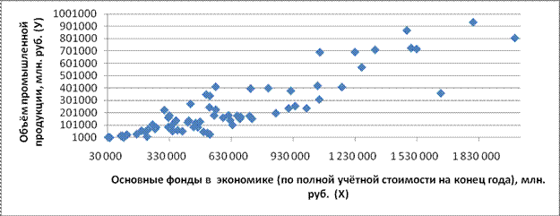 Лабораторная работа по эконометрике № 1 Необходимо выполнить следующие задания по 2-м показателям: - Объём промышленной продукции за 2008 год; -Основные фонды за 2008 год. 1. Определить какой из 2-х показателей является результирующим показателем (Уi), а какой факторным признаком, влияющим на результат (Хi). 2. Построить точечную диаграмму зависимости Х от У. Сделать вывод. Определить, как зависят друг от друга показатели. 3. Построить линейное уравнение регрессии. Сделать выводы по уравнению. Провести регрессионную статистику и дисперсионный анализ в таблицах. Сделать по ним выводы. 4. Посчитать остатки и сделать графики зависимостей остатков. Выводы. 5. Проверить гипотезу об отсутствии автокорреляции остатков. 6. Провести 2-а теста по оценке гетероскапичности. 7. Посчитать вручную коэф-т детерминации и проверить равенство: