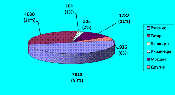 По данным таблицы 4 можно сделать вывод, что в Матвеевском районе количество женщин превышает количество мужчин. В любом государстве проживают лица разных национальностей, поэтому при разработке материалов переписей важно давать распределение населения по национальному составу. При этом обычно учитывается и язык, которым пользуются отдельные национальности. Это особенно важно для России, учитывая, что на её территории проживают более 100 национальностей.