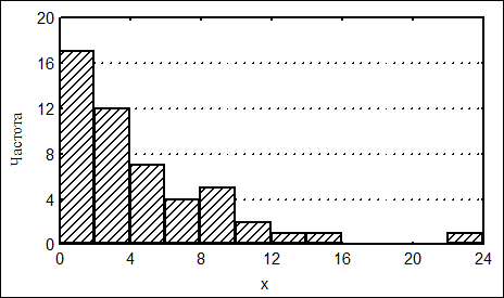 Рис. 2. Наблюдения, распределенные по показательному закону со средним 5 ( n = 50 ).