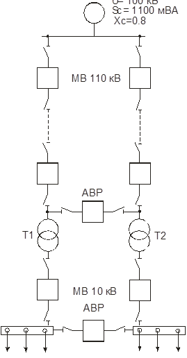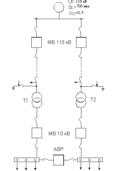 Просчитав все затраты на сооружение наших схем более экономичным получается I вариант схемы электроснабжения. По первому варианту производим расчет токов короткого замыкания. Расчет тока короткого замыкания.