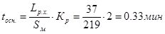 Длина рабочего хода: Lр. х. = Lрез. + у, где Lрез. = 20 мм. y = y = 3+2 = 5 мм. Lр. х = 20 + 5 = 25 мм. Расчет основного времени обработки: