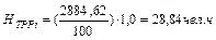 где Твi - годовая трудоемкость i-го вида работ, чел.-ч; Фр - годовой фонд времени одного рабочего, час, определяется по формуле Фр - (365 - Дв - Дп – Дот – Дуп) -tмс – Ки где Дуп - число дней в году невыхода на работу по уважительным причинам (болезни, выполнение государственных обязанностей и др.), для мужчин Дуп = 7, для женщин - 30; Км - учет сокращения рабочего дня на 1 час перед выходными и праздничными днями, Км =Дв+Дп