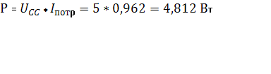 Мощность, рассеиваемая всеми микросхемами: PРАС D =UСС ∙IПОТ =5∙329,5= 1647,5 мВт = 1,64 Вт. Ток, потребляемый резисторами R2-R43: IПОТ R 2- R 43 =42∙15,0=630,0 мА. Ток, потребляемый резистором R1: IПОТ R 1 =3 мА. Суммарный ток потребления: IПОТ =IПОТ D + IПОТ R 2- R 23 + IПОТ R 1 =329,5+630+3= =962,5 мА= 0,962 А. Максимально рассеиваемая мощность: