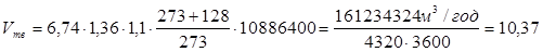 где Vо – объем дымовых газов, выделяющихся при сжигании 1 кг топлива, для угля марки ГР принимаем из справочника Vо =6,74 м3 /кг;