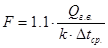1.1 – коэффициент, учитывающий потери тепла в окружающую среду. Расчетная разность средних температур теплоносителя и нагреваемой воды определяется по формуле: