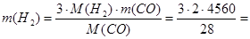 2. Зная мольные отношения, определим массы Н2 и СО2 , подаваемые в реактор за 1 час. Зная, что при нормальных условиях 1 моль любого газа занимает объем 22,4 л (0, 224 м3 ), определим количество молей водорода и оксида углерода:
