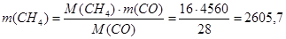 3. Расход окиси углерода на побочные и прямую реакции составит: На реакцию 2 m (СО) = 120000 · 0,038 = 4560 кг/ч На реакцию 3 m (СО) = 120000 · 0,041 = 4920 кг/ч На реакцию 4 m (СО) = 120000 · 0,025 = 3000 кг/ч На реакцию 5 m (СО) = 120000 · 0,007 = 840 кг/ч Тогда на прямую реакцию будет израсходовано СО: m (СО) = 120000 - 4560 – 4920 – 3000 – 840 = 106 680 кг/ч 4. Рассчитаем массу метанола исходя из уравнения реакции (1):
