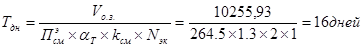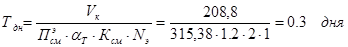 tCM - продолжительность смены в часах, tCM = 8,2 ч; Нвр - норма времени на разработку 100 м3 грунта, чел.-ч; Продолжительность работы экскаватора при разработке котлована: