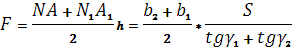 Производительность Определим объем V дробленого продукта, выпадающего из дробилки за один оборот эксцентрикового стакана, работающей с наивыгоднейшей частотой вращения (см. рис. 4.3). Куски, расположенные выше плоскости A 1 N1 , не выйдут из рабочего пространства дробилки, так как их размер больше максимальной ширины выходной щели. За один оборот эксцентрикового стакана из дробилки выпадает дробленый продукт, занимающий объем кольца с трапецеидальным поперечным сечением AA1 N1 N. Это кольцо представляет собой пространство, получающееся при вращении трапеции AA1 N1 N вокруг оси корпуса дробилки OO1 . Согласно теореме Гульдена объем такого пространства равен произведению площади фигуры, вращение которой образует кольцо, на длину окружности, описываемой центром тяжести фигуры вокруг оси вращения, т. е. V = F2πR, (4.3) где F - площадь трапеции AA1 N1 N; R - расстояние от оси вращения OO1 до центра тяжести трапеции, который расположен на линии, соединяющей середины оснований трапеции на расстоянии hc (по перпендикуляру) от ее большого основания. Из теоретической механики известно, что