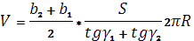 где γ1 и γ2 - углы между образующими поверхностей дробящего конуса и наружной чаши с вертикалью. Пользуясь свойством производной пропорции можно написать