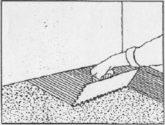 Поверхность уложенного раствора разравнивается зубчатой стороной скребка.