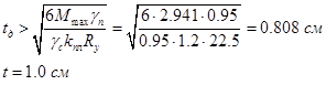 Требуемая толщина опорной пластины: Конструктивно принимаем толщину опорной пластины: tn = 5 мм, толщина дополнительного ребра жесткости: tр = 5 мм.