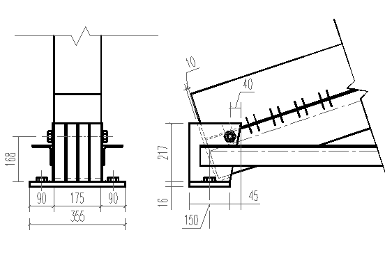 Соединение ребер жесткости с диафрагмой и опорной пластиной при N =341.121 кН: