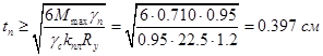 На третьем участке контактные напряжения существенно меньше по величине и, поэтому, не учитываются при расчете пластины на поперечный изгиб. Необходимая толщина опорной пластины: