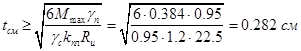· участок 2: изгибающий момент определяется из расчета консоли с расчетным вылетом: lк = 9.0 см.