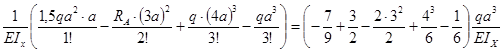 Для расчета балки на жесткость необходимо знать максимальный прогиб, который имеет место в сечении, где угол поворота равен нулю. Он имеет место в сечении z = 3а, отсюда vmax= vВ = 8qa4/(9 EIx)