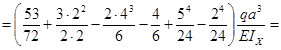 Эпюра Qy. Поперечная сила постоянна на участке ЕВ и ВС; изменяется по линейному закону на участке DA и AE и принимает следующие значения: QD = 0, QAD = QD – qa = – qa, QA = QAD + RA = – qa + 2qa = qa, QAE = QA – q·2a = qa – 2qa = – qa, QEB = QAE = – qa, QB = QEB+ RB = – qa + 4qa = 3qa, QB = QC = 3qa. Эпюра Мх. Изгибающий момент изменяется по линейному закону на участке EB и BC, по квадратичному закону на участках DA и AE, принимая экстремальные значения в сечении z = 4а. По значениям момента в характерных точках MD = 0, MA = – qa·0,5a = – 0,5qa2 , M (2a) = – 2qa·a + RA·a = – 2qa2 + 2qa2 = 0, ME = – 3qa·1,5a + RA·2a = – 4,5qa2 + 4qa2 = – 0,5qa2 , MEB = ME + 1,5qa2 = – 0,5qa2 + 1,5qa2 = qa2 , Mmax = MB = – 3qa·2,5a + RA·3a – 1,5qa2 = – 3 qa2, MC = 0. строим эпюру Мх, из которой находим расчетный изгибающий момент Мрас= 3qa2 = 60,48 кН∙м 2.2 Определение перемещений