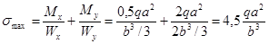 2.2.4 Подбор сечения неравнобоких уголков по условиям прочности и жесткости Из условия прочности имеем σmax = Mmax/Wx ≤ [σ]. Отсюда, учитывая что Mmax = – 3 qa2, [σ]= σвр=