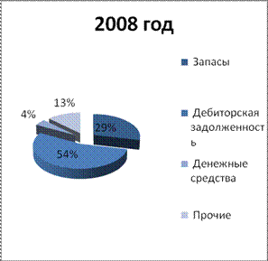 По результатам таблицы 3 можно заключить, что оборотные активы в период с 2008 по 2010 года имеют в целом тенденцию к сокращению, в том числе за счет уменьшения дебиторской задолженности на 364743 тыс. руб., а также прочих оборотных активов на 138974 тыс. руб. В анализируемом периоде сократилась и стоимость всего имущества на 710966 тыс. руб., так что процент оборотных активов в составе имущества сократился на 9,4%.