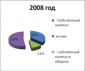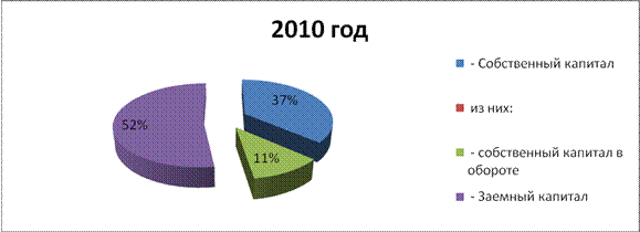 Рисунок 16 – Структура источников имущества Собственный же капитал растет в динамике по сравнению с 2008 годом в 2010 году увеличился на 38%. В этой связи далее следует более подробно остановится на структуре источников капитала ООО Универмаг «Детский мир». Таблица 8 - Структура источников капитала ООО Универмаг «Детский мир»