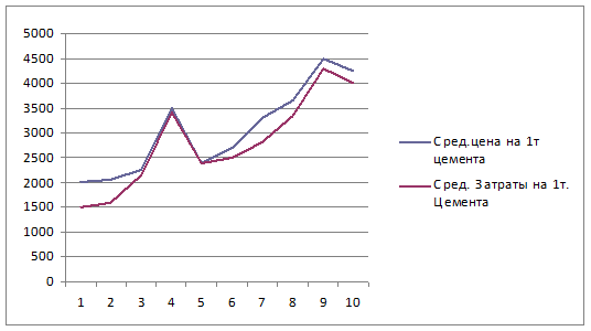 Уставной капитал предприятия составляет 16 920 руб. Размещены обыкновенные именные акции номинальной стоимостью 5 рублей в количестве 39425 рублей и привилегированные именные акции номинальной стоимостью 5 рублей в количестве 3359 рублей. При установлении цены предприятие использует метод ценообразования "Средние издержки плюс прибыль". Оно стремится назначить такую цену на цемент, чтобы она полностью покрывала все издержки по его производству, распределению и сбыту, включая справедливую норму прибыли за приложенные усилия и риск. Таблица 2.8 - Отпускные цены и себестоимость цемента (внутренний рынок) (в российских рублях и долларах США за тонну)