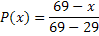 Расчет экономической эффективности управленческих решений данным методом показал, что наиболее рациональным и выгодным для предприятия является принятие управленческое решения №2 (реализация продукции по цене 32 руб.), однако данный метод не учитывает вероятность наступления того или иного события, уровень риска. Нами были установлены 2 цены на 1 мешок по 25кг цемента: 32 руб., 30 руб. Предприятию необходимо сделать выбор между этими ценами и получить на этом прибыль. Однако существует риск, что слишком высокая продажная цена замедлит, а то и вообще остановит реализацию данного товара, и предприятие вместо прибыли получит одни убытки. По мнению экспертов предприятия, вероятность продажи товара по цене выше 69 руб. вообще равна нулю, поскольку при данном уровне цен продукция предприятия будет менее конкурентоспособна и рынок при сложившихся обстоятельствах не готов к установлению такого уровня цен. В то же время снижение продажной цены ради ускорения процесса реализации должны иметь разумные пределы. Продажа данного товара, например, по цене ниже 29 руб. не выгодно для предприятия и принесет ему прямые убытки. Для определения оптимального уровня продажной цены за единицу данного товара используем дерево решений. Дерево решений – особый графический прием, позволяющий наглядно представить логическую структуру принятия решений. При создании дерева пункты принятия решений обозначаются квадратами, а узлы возникающих неопределенностей – кружками. Для каждого разветвления неопределенности рассчитывается вероятность, а в конце каждой финальной ветви указывается ожидаемая выплата. При обратном анализе для каждого узла неопределенности рассчитывается математическое ожидание выплаты. Для каждого пункта принятия решения выплата максимизируется. Лучшее решение выбирается по максимуму выплат. Так как продавать данный товар по цене ниже 29 руб. невыгодно, а по цене выше 69 руб. невозможно, то попытаемся определить вероятность продажи данного товара по цене х в интервале 29-69 рублей. Это можно сделать с помощью формулы вида: