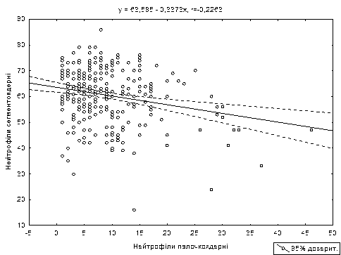 Для хворих груп В та С була виявлена суттєва відмінність таких факторів: еритроцити, гематокрит, лейкоцити, нейтрофіли палочкоядерні та сегментоядерні.