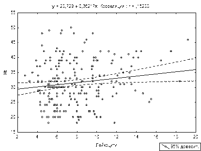 Між гемоглобіном і Ht існує залежність, яка описується лінійною регресією