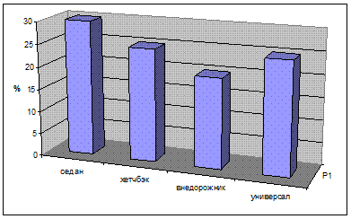 Рис. 2.6. Распределение ответов на вопрос «Автомобиль, с каким типом кузовом вы предпочитаете?» Не маловажную роль имеет возраст приобретаемого автомобиля, то есть его техническое состояние, пройденный километраж. Графическое распределение выбора возрастных категорий выбираемого автомобиля изображено на линейной гистограмме (рис. 2.7).