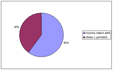 Рис. 2.1. Предпочтения в выборе вторичного рынка автомобилей Так, из диаграммы, представленной на рис. 2.1 видно, что большинство опрошенных 60% предпочитают не приобретать автомобили на вторичном рынке и лишь 40% потенциальных покупателей автомобилей хотят приобрести автомобиль на вторичном рынке. Это связано, с платежеспособностью потенциальных покупателей. Ведь, чем выше платежеспособность, тем выше запросы, а, следовательно, такой покупатель может себе позволить приобрести новый автомобиль. Также как и с выбором уровня автомобильного рынка, обстоит дело и с предпочтениями где покупать автомобиль. Графическое представление предпочтений респондентов в выборе того или варианта, представлено на рис. 2.2.