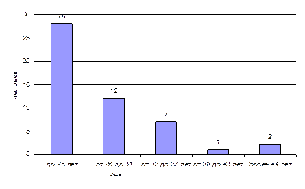 Рис. 2.14 Возрастной показатель опрашиваемых. Основная масса опрошенных людей находиться в возрасте до 25 лет, это экономически активное населения, с разными жизненными предпочтениями.
