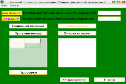 Запустим файл Primer4. exe. Вводим состояния и алфавит (рисунок 10), заполняем управляющую таблицу (рисунок 11):