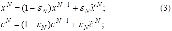 = Определим итеративный процесс следующим образом: по известным векторам xN -1 , cN -1 находим векторы xN и cN , которые вычисляются по следующим формулам: