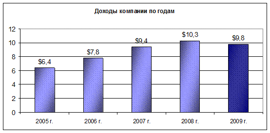 Результаты деятельности компании за 2005-2009 гг. в млрд.$