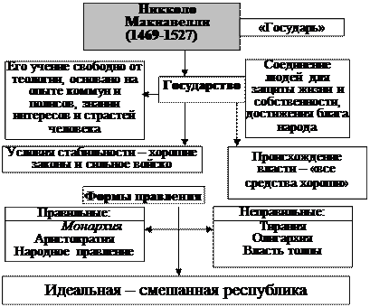 | Раздел III . РАННЕЕ НОВОЕ ВРЕМЯ Западная Европа в XVI веке В XVI веке в Европе произошли крупнейшие перемены. Главная среди них - складывание больших и сильных монархий, притязающих на роль консолидирующей силы и способствующих образованию наций; падение политического и духовного авторитета католической церкви. Своеобразие эпохи заключалось в том, что общественные силы, боровшиеся против феодализма и освещавшей его церкви, еще не порвали с религиозным мировоззрением. Поэтому общим лозунгом массовых антифеодальных движений был призыв к церковной реформе, к возрождению истинной, апостольской церкви. 1. Никколо Макиавелли Никколо Макиавелли (1469-1527 гг.) философ, дипломат и политик, вошел в историю политико-правовой мысли как автор «Государя», принесшего ему мировую известность. Сочинениями Макиавелли положено начало политико-правовой идеологии Нового времени. Анализируя творчество Н. Макиавелли принципиально важно уяснить, что в человеческих качествах и поведении государя он раскрывает методы, закономерности политической деятельности персонифицированного в правителе самого государства. В этой установке на выявление природы государства, а не в составлении портрета нужного стране правителя и даче ему рекомендаций, заключается глубокий концептуальный смысл «Государя». Его политическое учение свободно от теологии, оно основано на опыте современных ему городов-государств, правителей Античного мира, на знании интересов и страстей человека, участников политической жизни. Макиавелли полагал, что изучение прошлого, учет психологии людей дает возможность предвидеть будущее и определить средства и способы действий. В политике всегда следует рассчитывать на худшее, а не на доброе и идеальное. Государство - есть некое отношение между правительством и подданными, опирающееся на страх или любовь последних. При этом страх не должен перерастать в ненависть. Главное - реальная способность правительства повелевать подданными. Цель государства и основа его прочности - безопасность личности и незыблемость собственности; «человек, которого лишают какой либо выгоды, никогда не забывает этого». «Самое опасное для правителя - посягать на имущество подданных». Благо свободы (незыблемость частной собственности и безопасность личности) - цель и основа прочности государства, наилучшим образом обеспечены в республике. Воспроизводя вслед за Полибием идеи о возникновении и круговороте форм правления, он как и античные мыслители отдает предпочтение смешанной форме (монархии, аристократии и демократии). Особенность же его учения в том, что смешанную республику он считал результатом борющихся социальных групп. Макиавелли высказывает свое, отличное от общепринятого среди политиков, мнение о народе: народные массы постояннее, честнее, мудрее и рассудительнее государя. Народ нередко ошибается в общих вопросах, но очень редко - в частных. Даже взбунтовавшийся народ менее страшен, чем тиран: народ можно уговорить словом, от тирана можно «избавиться только железом». Жестокость народа направлена против тех, кто посягает на общее благо, жесткость государя - кто «может посягнуть на его собственное личное благо». От народа он отличает знать. Нет общества, где бы не было противостояния знати и народа. Честолюбие первых - источник беспокойства смут в го