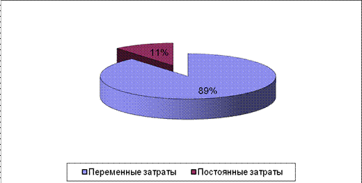 На рис. 9 представлено процентное соотношение переменных и постоянных затрат на кирпично-бетонную кладку внутренних и наружных стен.