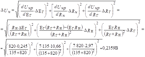 Вихідні дані: Еr =7,0 В; Rr =135 Ом; ±δRn =1,3%; Rн = 820Ом; ±δЕГ =3,5%; ±δRГ =2,2%; Px =PH (мВт); Ux =UH (В). Знайти: Pн , Uн . Розв’язок. 1. Запишемо вихідні дані з вказанням похибок: Еr =Еr ±δЕГ = 7,0 ±3,5% ; Rr = Rr ±δRГ =135±2,2%; Rн = Rн ± δRn =820±1,3%. 2. Виразимо відносні значення похибок цих величин через абсолютні: а) δЕГ