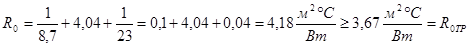 Находим фактическое термическое сопротивление ограждающей конструкции: