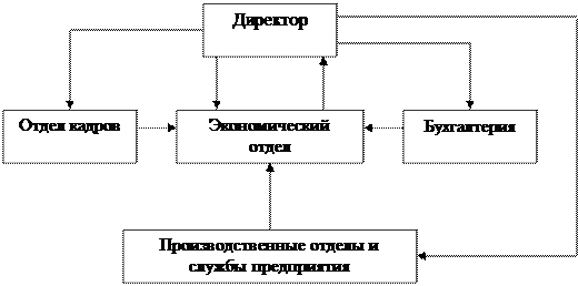 Рис 1.2 - Схема организации экономического анализа ООО «Автотехсервис» Экономический анализ на предприятии выполняется сотрудниками экономического отдела. Данные в экономический отдел для проведения экономического анализа предоставляют различные службы предприятия: · бухгалтерия предоставляет отчетность по результатам деятельности предприятия, которая включает в себя «Бухгалтерский баланс», «Отчет о прибылях и убытках», данные о выплате заработной платы работникам предприятия; · отдел кадров предоставляет данные о численности работников предприятия; · производственные службы и отделы предприятия предоставляют данные об оборудовании и частоте выхода его из строя. Анализируя вышеприведенную информацию, экономический отдел вырабатывает решения, направленные на улучшение результатов деятельности предприятия и докладывает о результатах своих анализов директору предприятия, который по предоставленным результатам отдает управленческие приказы службам предприятия. К таким приказам относятся: приказ о повышении отпускных цен на реализуемые услуги, который отдается в бухгалтерию, приказ о приеме на работу высококвалифицированных специалистов – в отдел кадров. Результаты, полученные в ходе проведения аналитической работы, обсуждаются на совещаниях руководства. В будущем также планируется проведение в ООО «Автотехсервис» ежедневных планерок и еженедельных совещаний. 2.3 Оценка финансово-хозяйственной деятельности предприятия Очевидно, что для грамотного управления современным автосервисом необходим анализ его деятельности по различным параметрам. Рассмотрим некоторые из них. Анализ использования потенциала предприятия. Трудовой потенциал сервисной службы на базе имеющихся трудовых ресурсов рассчитывают для постановки задач и планирования. Трудовой потенциал = Штат производственных рабочих * Количество рабочих дней * Количество рабочих часов в день * Коэффициент продуктивности рабочего времени. Количество человеко-часов 10 механиков при 8 - часовом рабочем дне и 22 рабочих днях составляет в месяц 1760. При продуктивности использования рабочего времени равной 85% (за вычетом простоев без заказов, простоев по другим причинам), в месяц получается: 1760 * 85% =1408 производительных человеко-часов. При эффективности использования рабочего времени, равной 110%, благодаря хорошей организации и квалификации, трудовой потенциал в месяц составит: 1408 * 110% = 1549 часов Это и есть трудовой потенциал сервисной службы по трудовым ресурсам. Разделив его на средний норматив времени на выполнение одного ремонтного заказа, который выясняют на основе собственной статистики, в данном случае, 2,5 человеко-часа, получают количество заказов средней сложности, которое сервисная служба может выполнить имеющимися людскими ресурсами. В нашем случае в месяц: Потенциал сервисной службы по заказам составит 1549 : 2,5 = 620 заказов. Финансовый потенциал можно рассчитать по формуле: Финансовый потенциал в месяц = Трудовой потенциал * Стоимость нормо-часа. От работы 10 механиков в месяц можно ожидать выручки: Финансовый потенциал = 154 9 * Стоимость нормо-часа При стоимости нормо-часа 10$ выручка в месяц составляет 15490$. Эта цифра минимальна, так как на практике при калькуляции стоимости работ в заказ-нарядах количество нормо-часов, засчитанных на ремонт, обычно