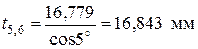 Определяем расстояние от текущей точки до оси Bi = ri cos (g0 + gi ) B1,2 = 12 cos (5˚ + 5˚) = 11,817 мм B3,4 = 16 cos (5˚ + 3,747˚) = 15,813 мм B5,6 = 29 cos (5˚ + 2,065˚) = 28,779 мм Определяем промежуточную величину Ki = ±( Bi - r баз ) K1,2 = ±( 11,817 - 12) = - 0,183 мм K3,4 = ±( 15,813 - 12) = 3,813 мм K5,6 = ±( 28,779 - 12) = 16,779 мм Определяем глубину профиля в i -ой точке