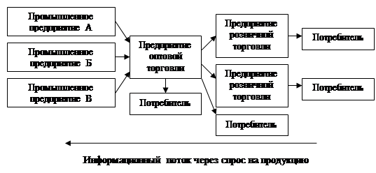 Рисунок 2 – Схема товародвижения с участием торгово-посреднической организации [31] При такой схеме поставок информационный поток следует в обратном направлении – от потребителя к поставщику с целью удовлетворения потребительского спроса по видам продукции, количеству, качеству, времени поступления, ценам на материалы и другим характеристикам материалов. Как уже говорилось, организация закупок материальных ресурсов у промышленных предприятий с целью их последующей продажи потребителям – одна из основных функций оптово-посреднических организаций. Вместе с тем, осуществляя закупку материальных ресурсов, посреднические структуры воздействуют на поставщиков с целью повышения качества продукции, расширения ее ассортимента и последующего удовлетворения потребительского спроса. Осуществление закупочной деятельности включает в себя комплекс операций по выявлению источников закупки материалов, изучению покупательского спроса, формированию и предоставлению заказов поставщикам на производство, а в последующем и поставку необходимых товаров. Решение о закупках материальных ресурсов принимается с учетом цены, количества, качества и уровня обслуживания потребителей. После определения потребности в материальных ресурсах определяются поставщики, которые могут поставить необходимую продукцию. При выборе поставщиков должны быть согласованы цены на поставляемую продукцию, сроки поставок и качество товаров. Важным критерием является надежность поставщика, что позволяет снизить риск несвоевременности поставок. Осуществление маркетинга закупок можно представить этапами: - определение потребителей; - анализ источников закупок; - исследование рынка закупок; - отбор поставщиков материалов; - использование инструмента маркетинга закупок; - переговоры по условиям поставки; - размещение заказов; - контроль за поступлением товаров; - ведения бухгалтерского учета и составления бухгалтерской отчетности. Таким образом, проведение маркетинга закупок требует выполнения следующих условий: - использование рынка закупок и сбыта товаров; - выбор поставщиков и установление с ними договорных отношений; - участие в ярмарках и выставках; - согласование условий оплаты. 1.1.2 Маркетинг сбытаПри маркетинге сбыта продукции определяющим является исследование покупателей, изучение их потребностей. Исследование рынка связано также с изучением положения предприятия и его товара на рынке, соотношения спроса и предложения по конкретным видам товаров. Направления исследования рынка сбыта: - анализ емкости рынка; - анализ покупок и реакция покупателей на мероприятия в сфере политики сбыта; - изучение конкурентов, их преимуществ и недостатков. Изготовители продукции и торговые посредники используют различные методы маркетинговых исследований по сбыту продукции, что требует дополнительных вложений средств на стимулирование сбыта. Одно из направлений маркетинговых исследований – исследование рынка и использование преимущества своей конкурентоспособной продукции. Исследование рынка предусматривает, прежде всего, изучение потребностей покупателя и его пожелания. Необходимо знать конъюнктуру рынка по отдельным отраслям: торговля на рынке по отдельным товарам может быть приостановлена, а по другим будет наблюдаться значительный спрос. В